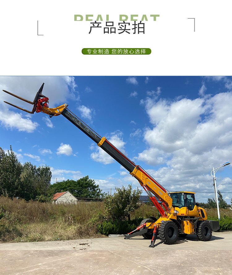 伸縮臂式裝載機,多功能的裝載機,適用于不同場地、不同行業(yè),代替人工,這款伸縮臂裝載機的緊湊性讓它為狹窄工地作業(yè)。集中式操作手柄,操作員單手可以操控所有動作,從而完全掌控伸縮臂裝載機去實現(xiàn)好的生產(chǎn)率。這款機型具備多功能性,可通過更換不同的屬具,滿足您各種作業(yè)需求。